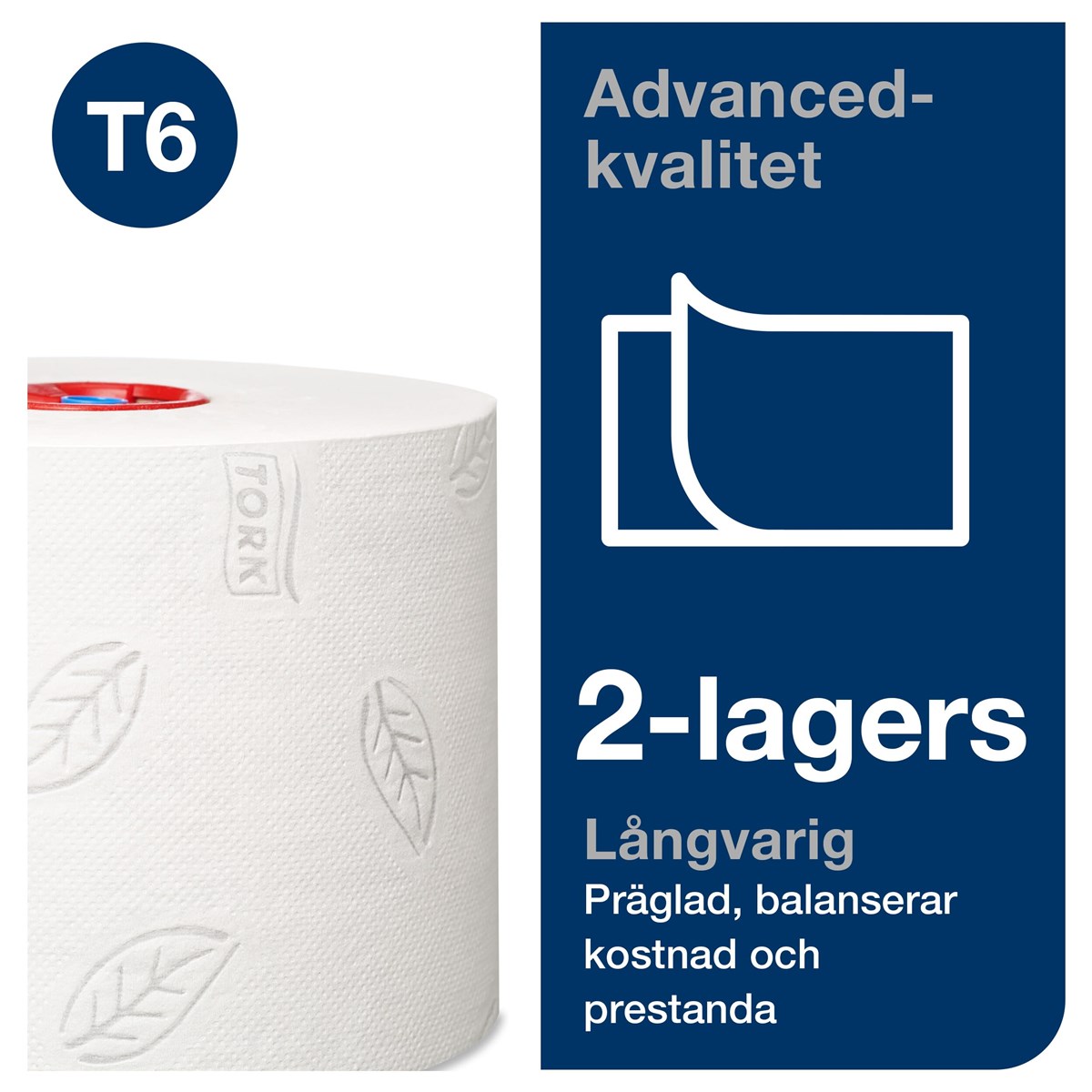 Ett kompakt toalettpapper där rullarna är extra långa. Systemet passar perfekt i toalettutrymmen med låg till medelhög besöksfrekvens. Vitt, 2-lags operforerat toalettpapper av hög kvalitet (Advanced). Grå dekor. 100 m/rulle. 27 rullar/förp.